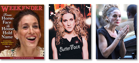 Poor Sarah, she’s the very definition of a “Butter Face.” (A special shout out to our pals at The Onion for the Weekender cover.) Years ago in the late 1990s Sarah Jessica Parker went from Horseface to Household Name by starring in HBO’s raunchy urban fashion farce “Sex and the City.” Sure, she was butt ugly. But her bod was hot enough to look the other way. Sadly, since the HBO series came to an end, Sarah has not aged well. In fact, recently Sarah Jessica Parker was voted “The Unsexiest Woman Alive” by Maxim magazine. Pity.